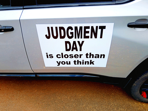 Then he asked, “Is that your car?” He noticed the magnets with the messages on them. I told him it was. We talked some more. He then said, “You didn’t come up to me because you saw me taking pictures of your car, did you?” He thought I had seen him taking pictures of my car, and that was the reason I walked up to him. He didn’t realize that I walk up to people because I want to hand them a tract and chat with them. So, I told him, “No. I walked up to you just like I walk up to everyone else.” He couldn’t believe it. He told me that he had taken pictures and was texting them to a friend while he was talking to him and said, “That is a rolling gospel!” I liked that.