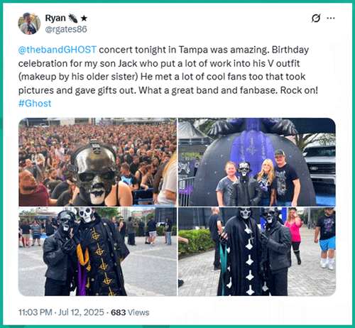 I noticed that people in line for the Ghost concert were all dressed up. One guy was dressed like he thought Jesus would have dressed. Had a nice chat with him! Others were dressed as priests and nuns. But interestingly, people were also dressed up for the Beyoncé concert, since it is called the Cowboy Carter Tour. They were wearing cowboy hats and boots, probably for the first time, and they probably bought them just for the show. Both of those concerts were like Halloween for grown-ups.
