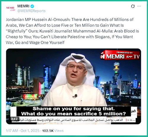 The man makes the comment that he would be willing to give up the lives of 5 to 10 million Arabs for the land that he says is rightfully theirs. This man would give up 10 million lives for Gaza or Palestine? Life is cheap to these people. It has no value. Just a piece on a chessboard.