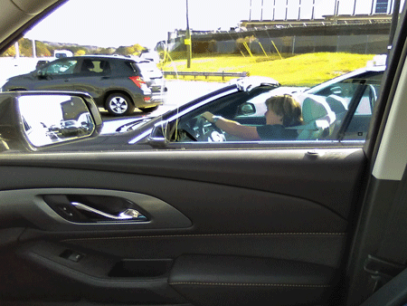 “That is a great hat you are wearing, but it would fly off my head in this convertible.”