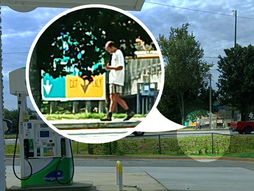 As I was exiting the highway on the off-ramp to get some gas, there was a guy standing along the inside of the ramp asking for money. I enjoy chatting with those guys, but I wasn’t near him, so I pulled off down the street and hit a gas station near there.