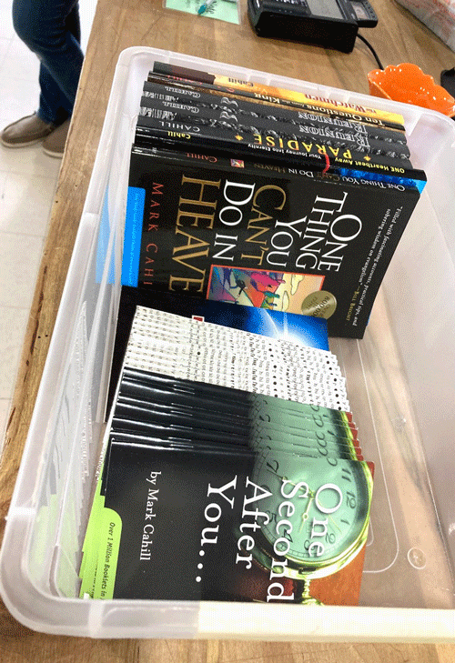 I wanted to pass along this picture and story behind it as I thought it was encouraging. My wife was in a local thrift store and saw this box of books on the counter. She asked the clerk about it and he said there was a lady who stopped by and asked if she could leave them on the counter for anyone who would like one to take free of charge and she told them if they run out she would bring more in.
